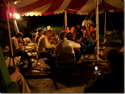 This weekend was the fiddlers convention. Not good weather but tonight it is not raining and not hot but pretty nice. They set up tents and have gazebos around and they just get together and have a jam. This was probably the best picture that I took. The building in the back is the motel. I know it has 5 units but not sure if it has more than that. The main lodge has 24 units. Nice units!
