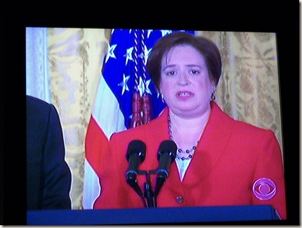 We got back home and I decided to take a nap. Didn’t feel to good after the nap so I took a little walk, still didn’t feel to good. We watched the news at 5PM and I couldn’t get my camera out fast enough to get a picture of the President while he was introducing his “new” chief justice or whatever her title is…. Look in the background…